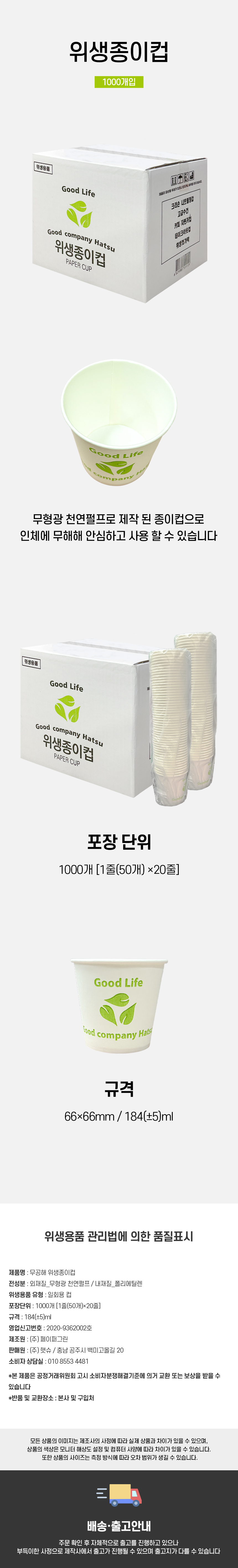 햇슈 위생종이컵 자판기 1박스(1000개입)