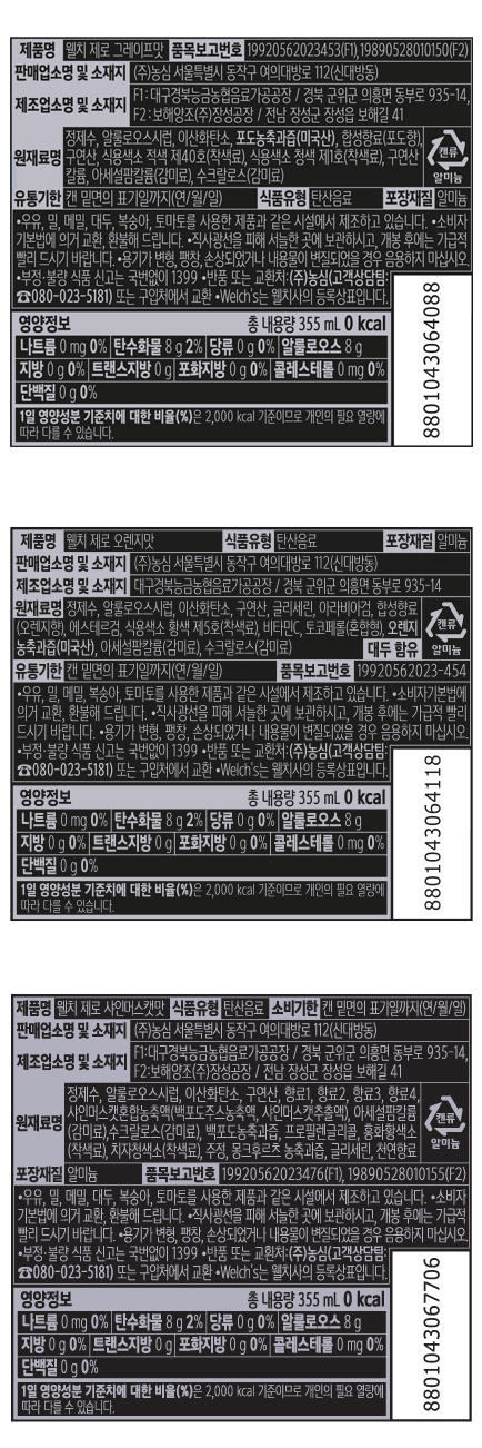 웰치스 제로 탄산음료 4종 혼합세트!!